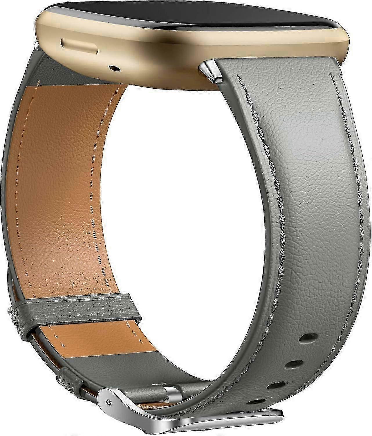 Elegant Genuine Leather Strap for Fitbit Versa 3/Sense 2 - Sophisticated Grey Band