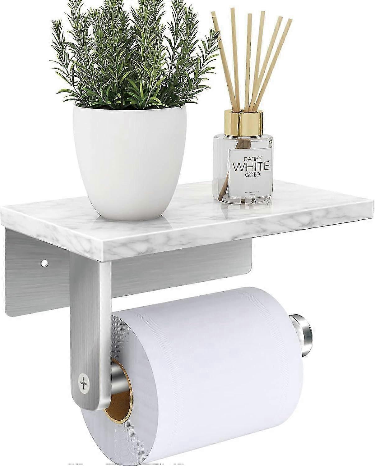 Luxury Brushed Nickel Toilet Paper Holder with Marble Shelf - British Bathroom Elegance
