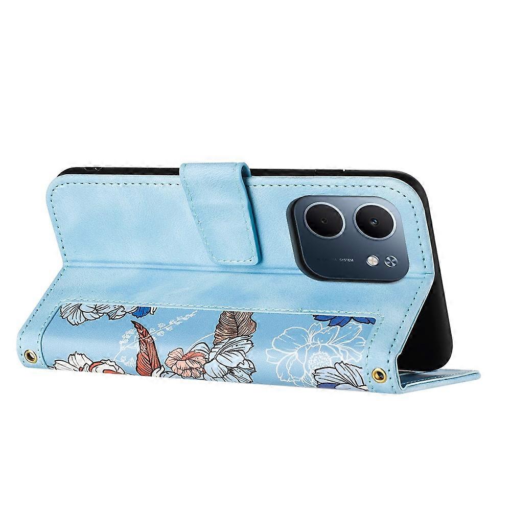 Compatible For Oppo A5x 4G Case PU Leather Floral Phone Cover with Card Slots / Wrist Strap