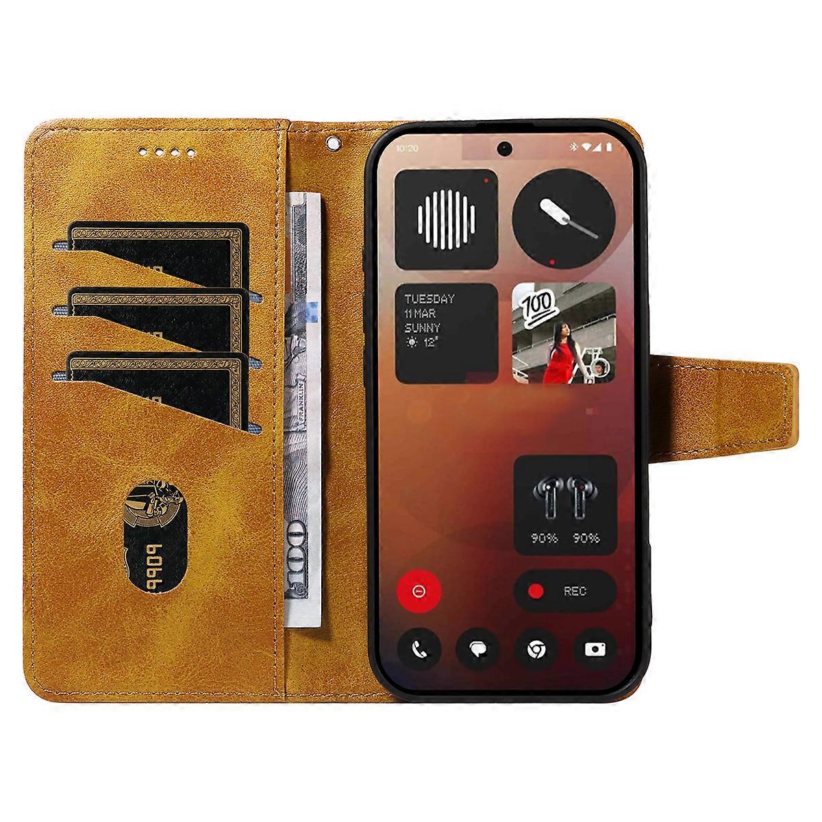 Compatible For Nothing Phone (3a) Pro Leather Case Wallet Stand Grids Imprinted Phone Cover with Strap