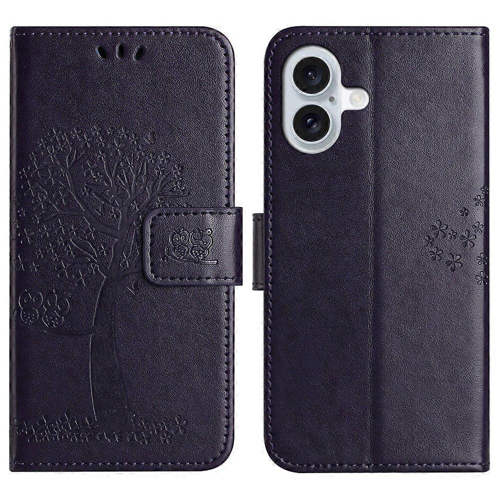 Compatible For iPhone 17 Case PU Leather Owl Tree Imprinted Wallet Phone Cover with Strap