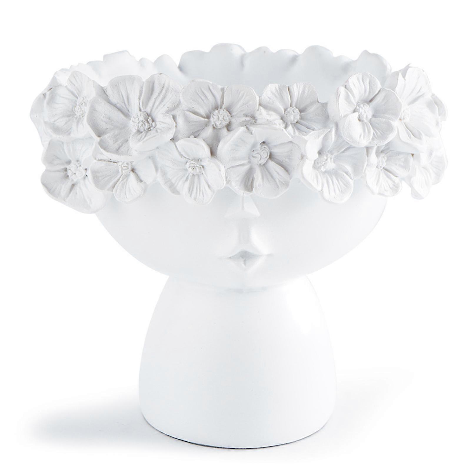 Flower Wreath Doll Head Planter Resin Craft for Home Garden Decor 8.5 Inch