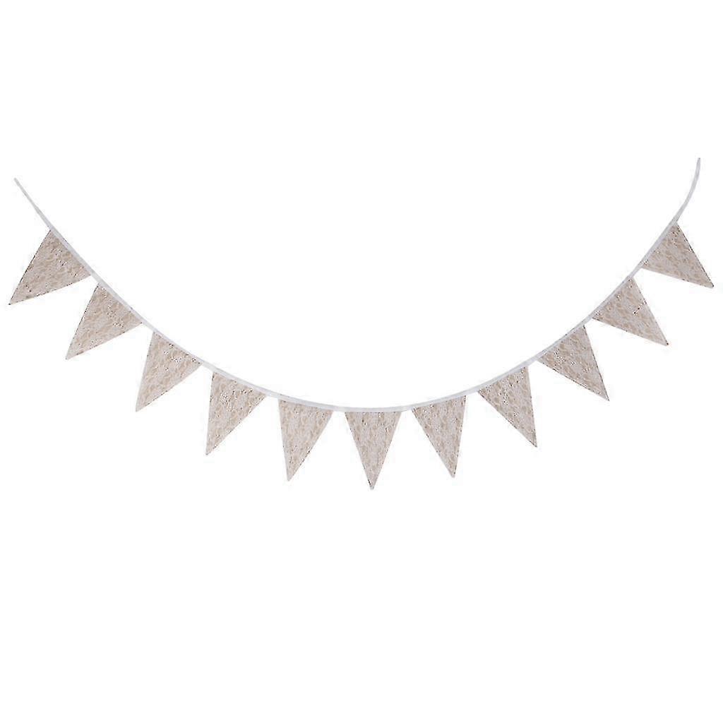 Vintage Jute Burlap Bunting Banner with Lace Trim 11 Flags for Wedding Decor