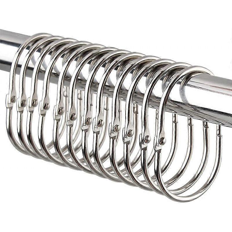 12 (Silver) Rustproof Metal Shower Curtain Rings, Oval Curtain Hooks