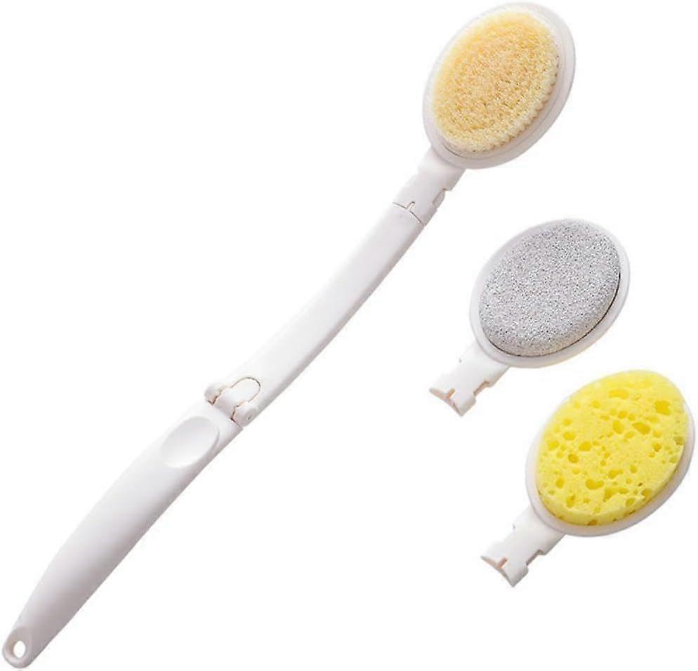 3-in-1 Back Brush - Body Brushes - Exfoliating Sponge Brush - Shower Brush - Bath Brush - Massage Brush - 48x8cm - Color - Foldable - Removable - Pla