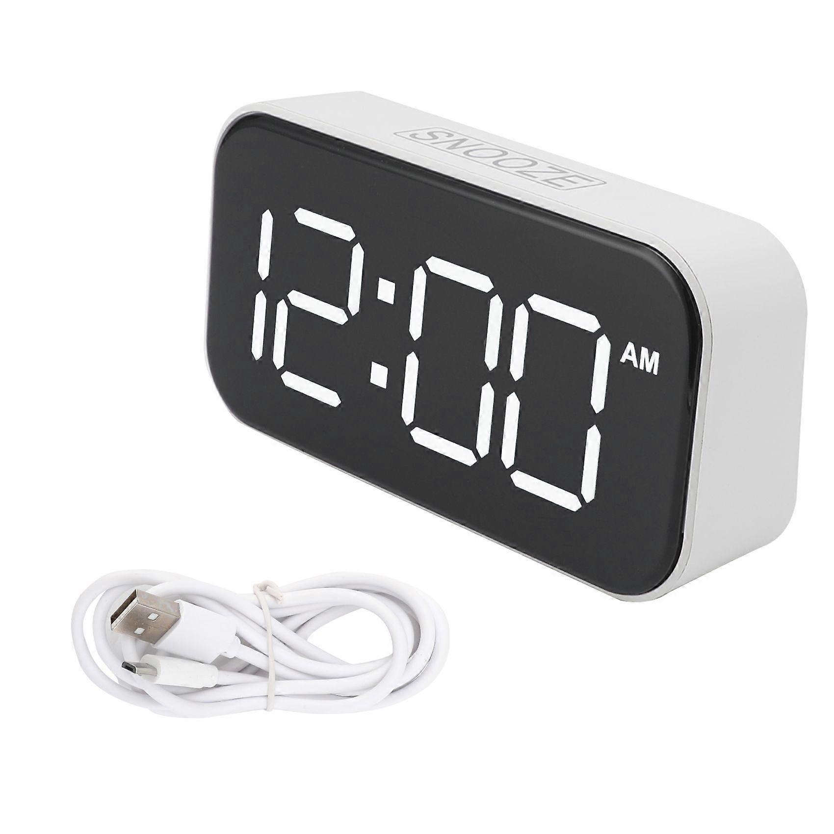 LED Digital Alarm Clock, 12/24 Hour Adjustable Brightness, White Shell, Green Font, USB, for Bedroom and Office