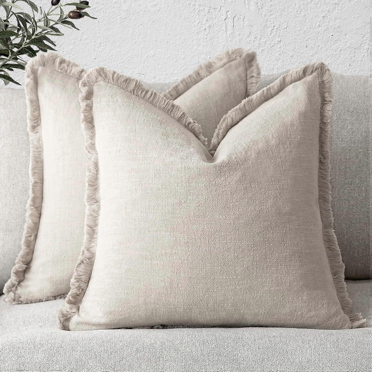 Set of 2 Bohemian Style Tassels Linen Decorative Throw Pillow Covers with Tassels Soft Decorative Cushion Covers for Sofa Bed Living Room Home Decor