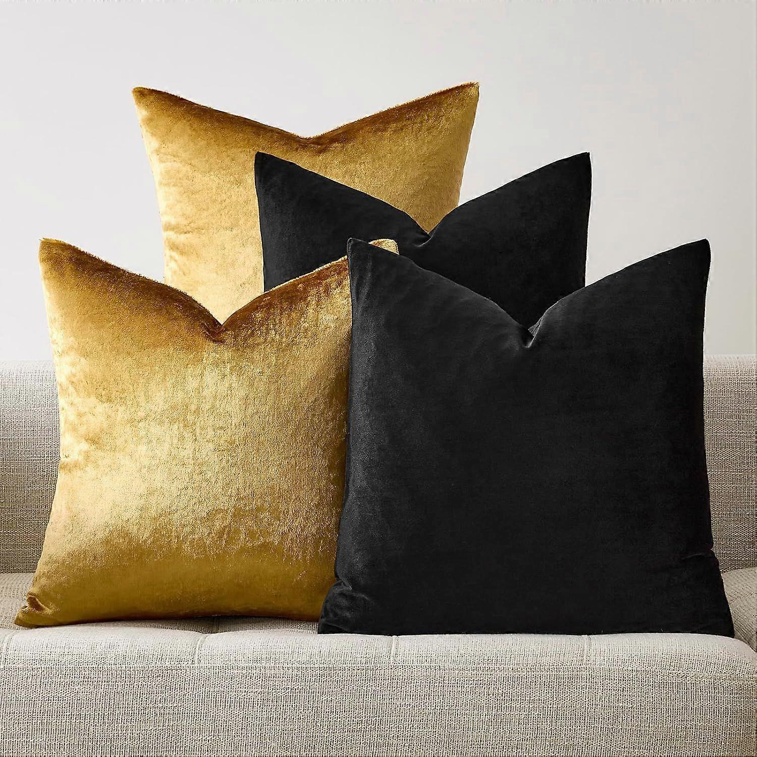 Decorative Throw Pillow Covers 45x45cm, Soft Black Gold, Set of 4 Square Velvet Pillow Covers