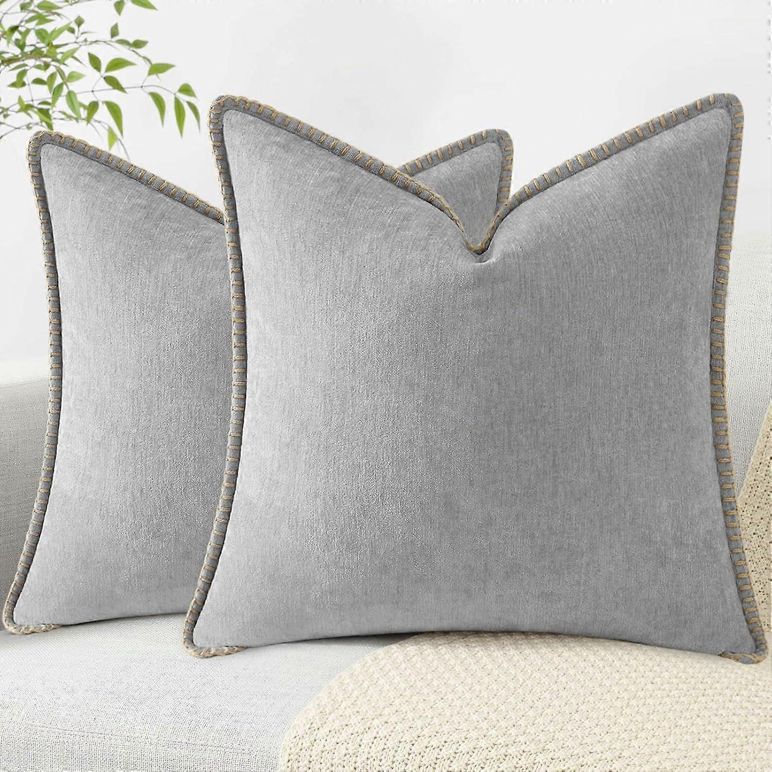 Soft Throw Pillow Covers 50x50cm Set of 2, Neutral Farmhouse Velvet Decorative Pillow Covers with Stitched Edge
