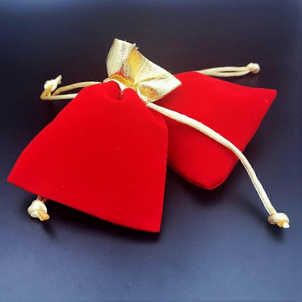 10 Pcs Gold Rim Drawstring Jewelry Pouches Red Drawstring Pocket Wedding Party Christmas Favor Gift Bags Red and Golden