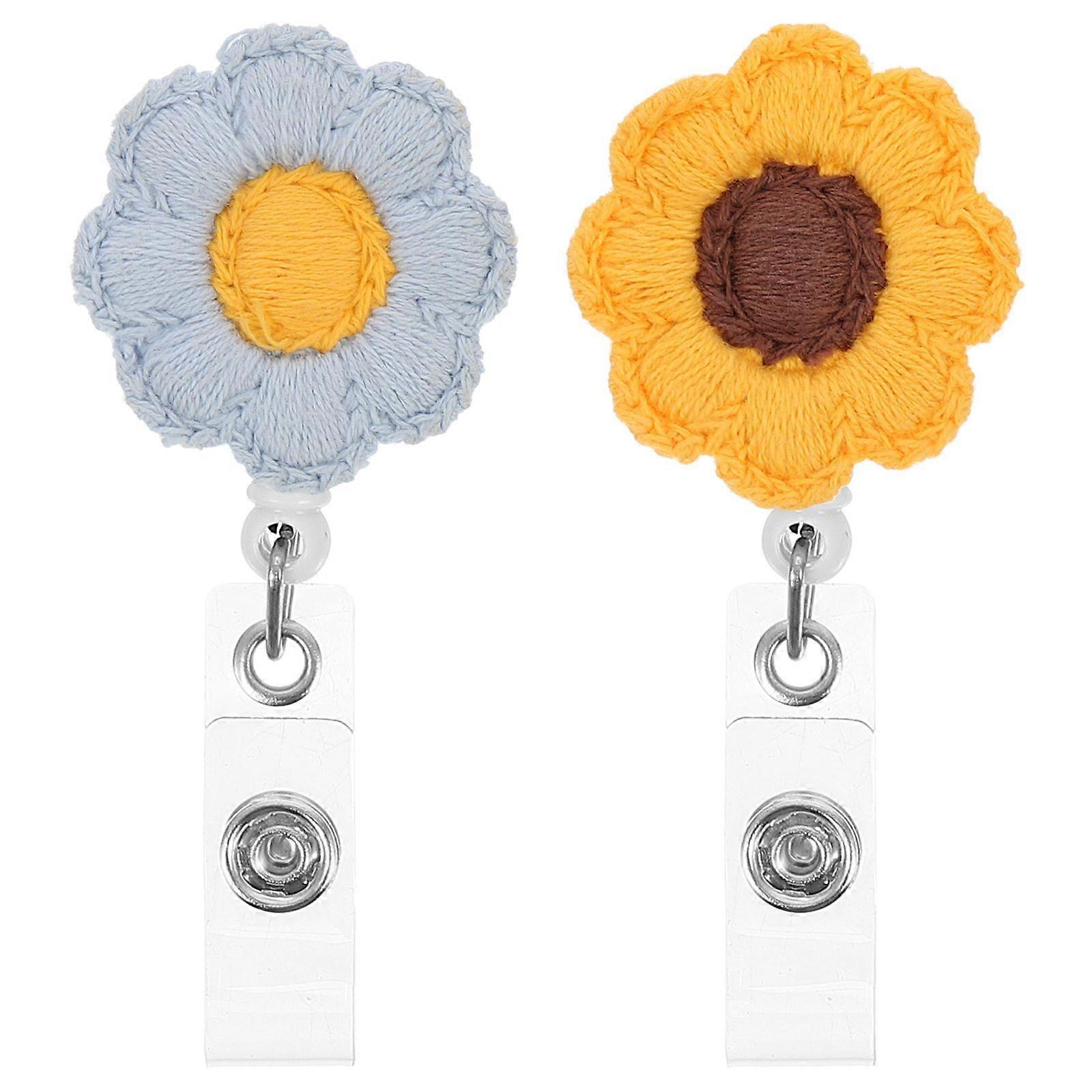 2Pcs Decorative Badge Holder Colored Sunflower Badge Clip Retractable Name Tag Holder