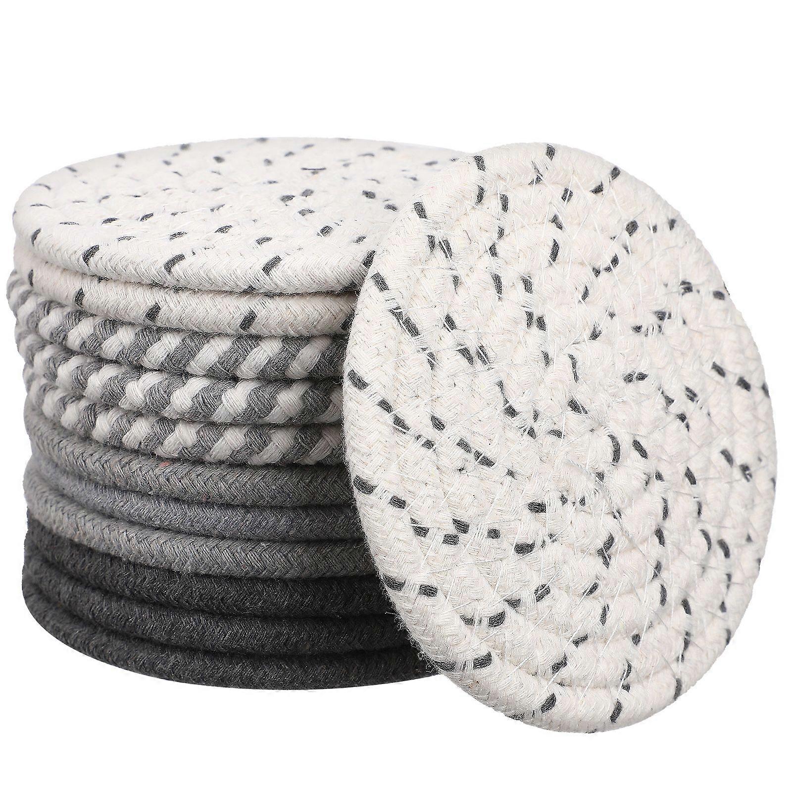 12pcs Absorbent Coasters Woven Cotton Coasters Drinks Coasters Tabletop Protection Mats Dinning Accessories Round Cup Coasters