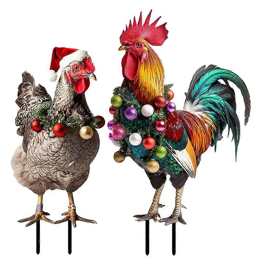2pcs Chicken Yards Christmas Metal Garden Stakes Chicken Yard Signs Realistic Garden Stakes Arts