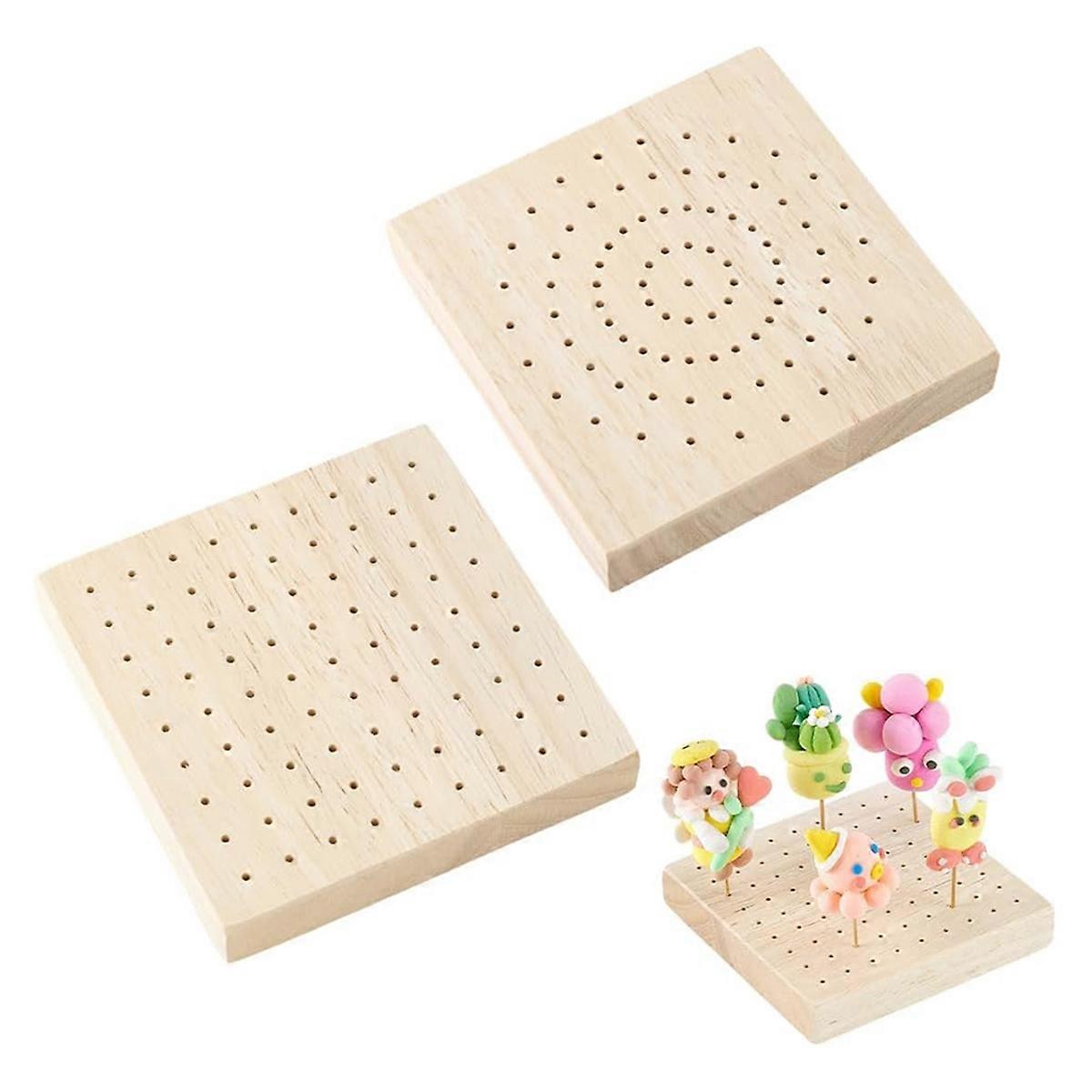 2Pcs 3.9x3.9 Inch Mini Wooden Skewer Holder Square Pick Display Stand for Craft Pottery Clay Model Displays