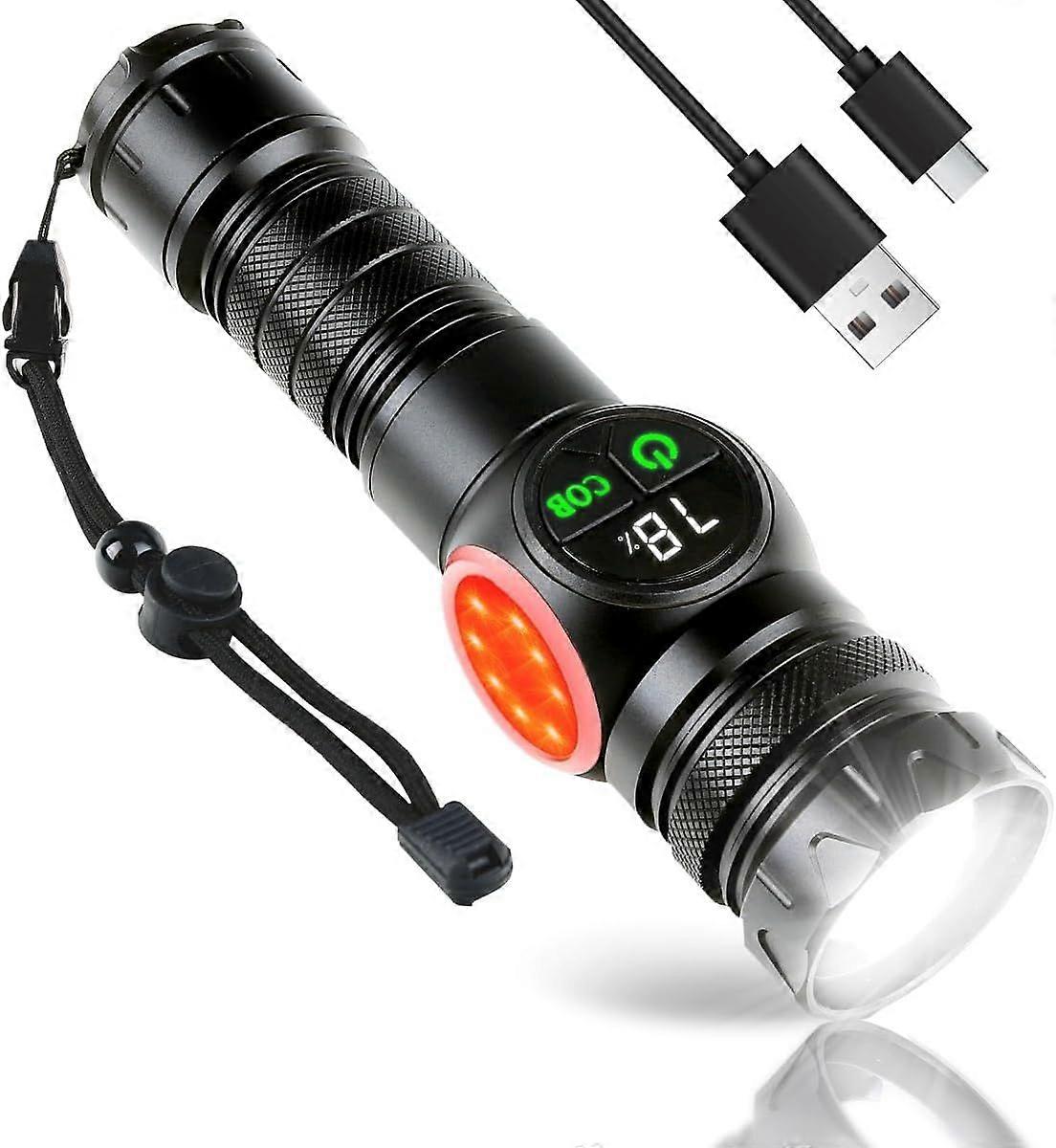 Ultra Powerful LED Flashlight, 2800 Lumens Rechargeable Torch, COB Side Lights, 9 Lighting Modes, for Camping Emergency