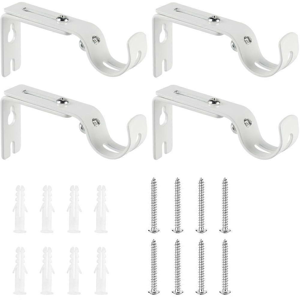Pack Heavy Duty Metal Adjustable Curtain Rod Brackets for 25mm Rods, White Wall Mounted Brackets and Holders, White