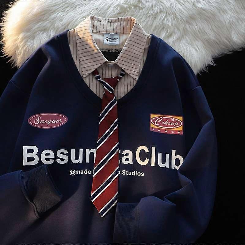 91% Rate American College Style Polo Tie, Fake Two-Piece Sweatshirt, Men's Spring And Autumn Thin Loose Korean Style