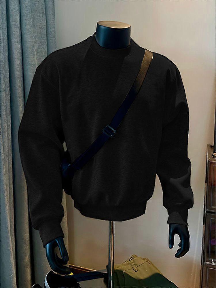 Cleanfit American-Style Shoulder Long-Sleeved Sweater Men's Autumn And Winter Small Neckline Heavy Stiff Fleece-Lined Black Base Shirt