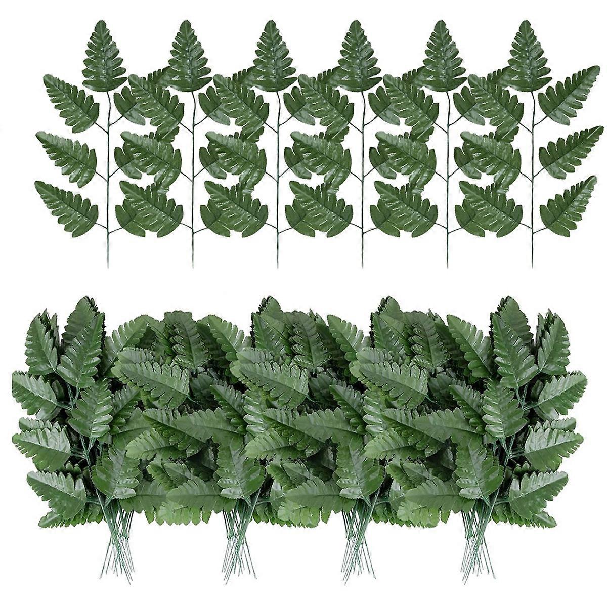 Artificial Leaf Fern - Artificial Fern Leaves Stem Faux Greenery Plant for Cemetery Grave Headstone Wedding 100Pcs