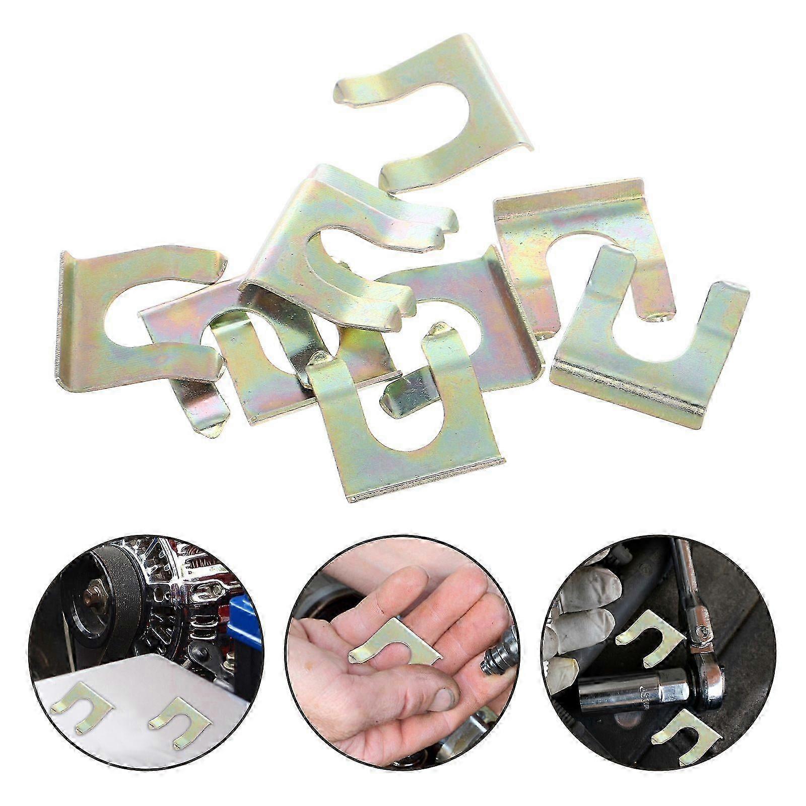 10Pcs Iron U-clip Clamp Brake Line Retainer Positioning Retaining Clip For Cars Trucks Motorcycles Brake Line Holder Fuel Line Positioning U-clip