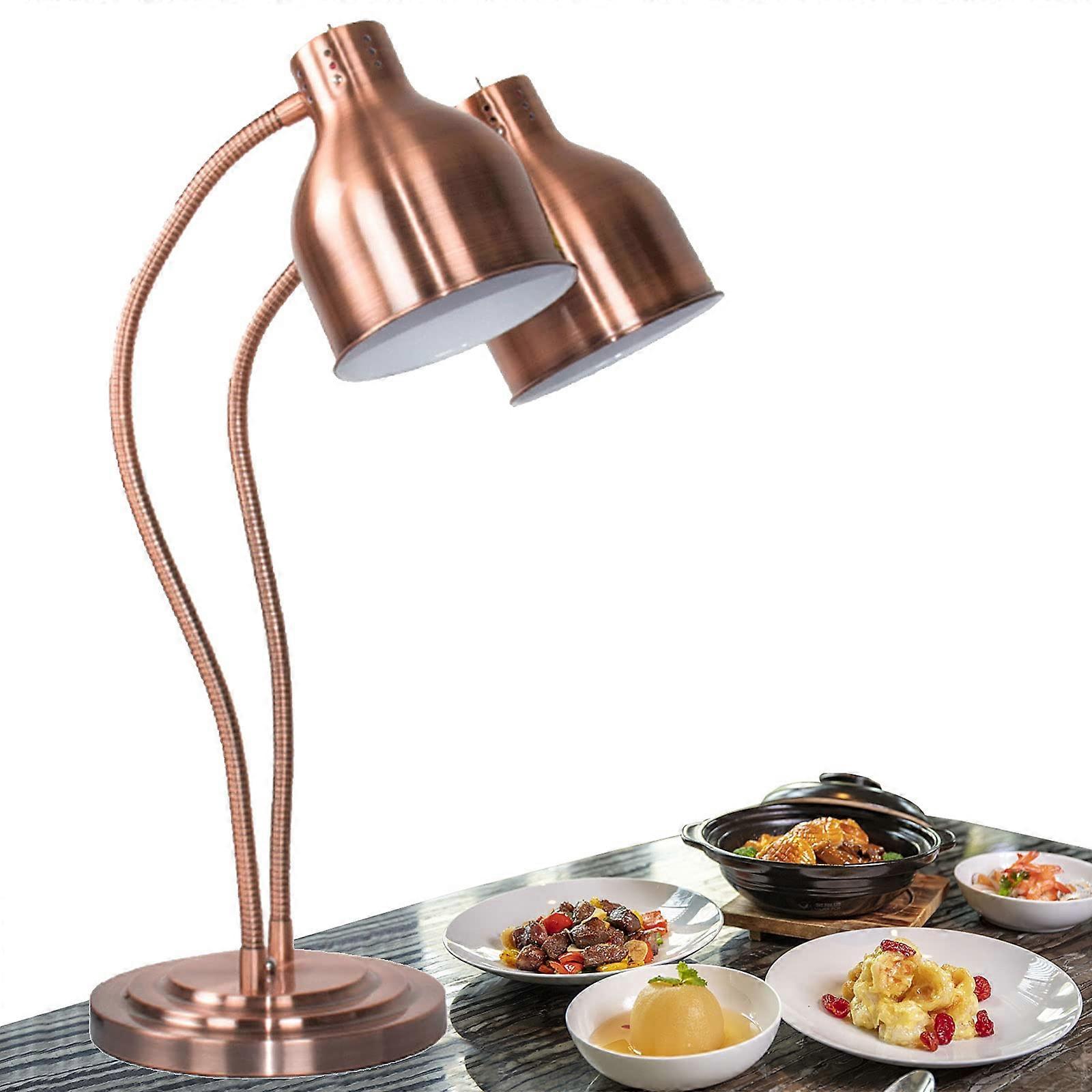 Food Heat Lamp Freestanding Rose Gold, Double Head Multi-Directional Catering Warmer for Parties and Buffets