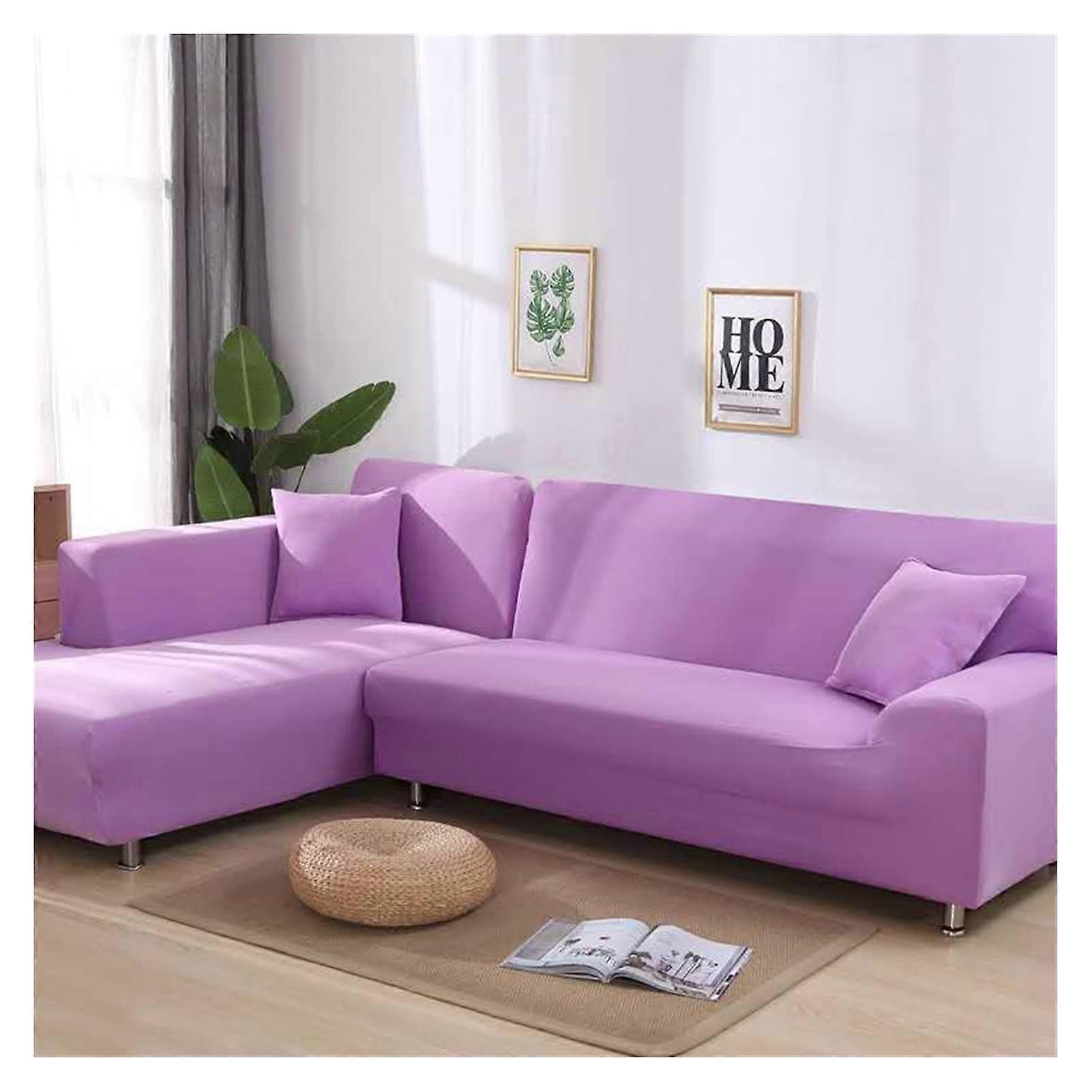Corner Sofa Covers for Living Room L Shaped Stretch Slipcovers Light Purple 3-Seater 190-230cm Chaise Lounge Funda