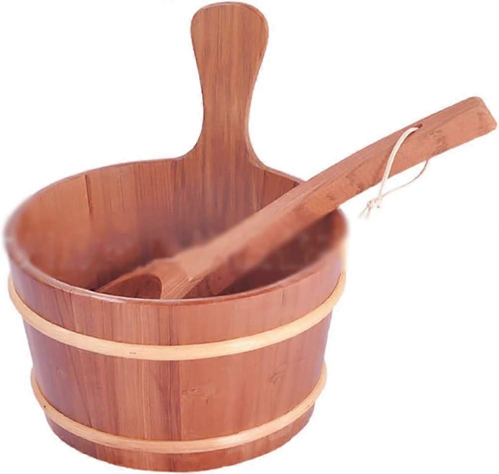 Wooden Pail Sauna Bucket And Ladle Set For Sauna Bath Spa Steam Water Accessories Wooden Bucket With Ladle