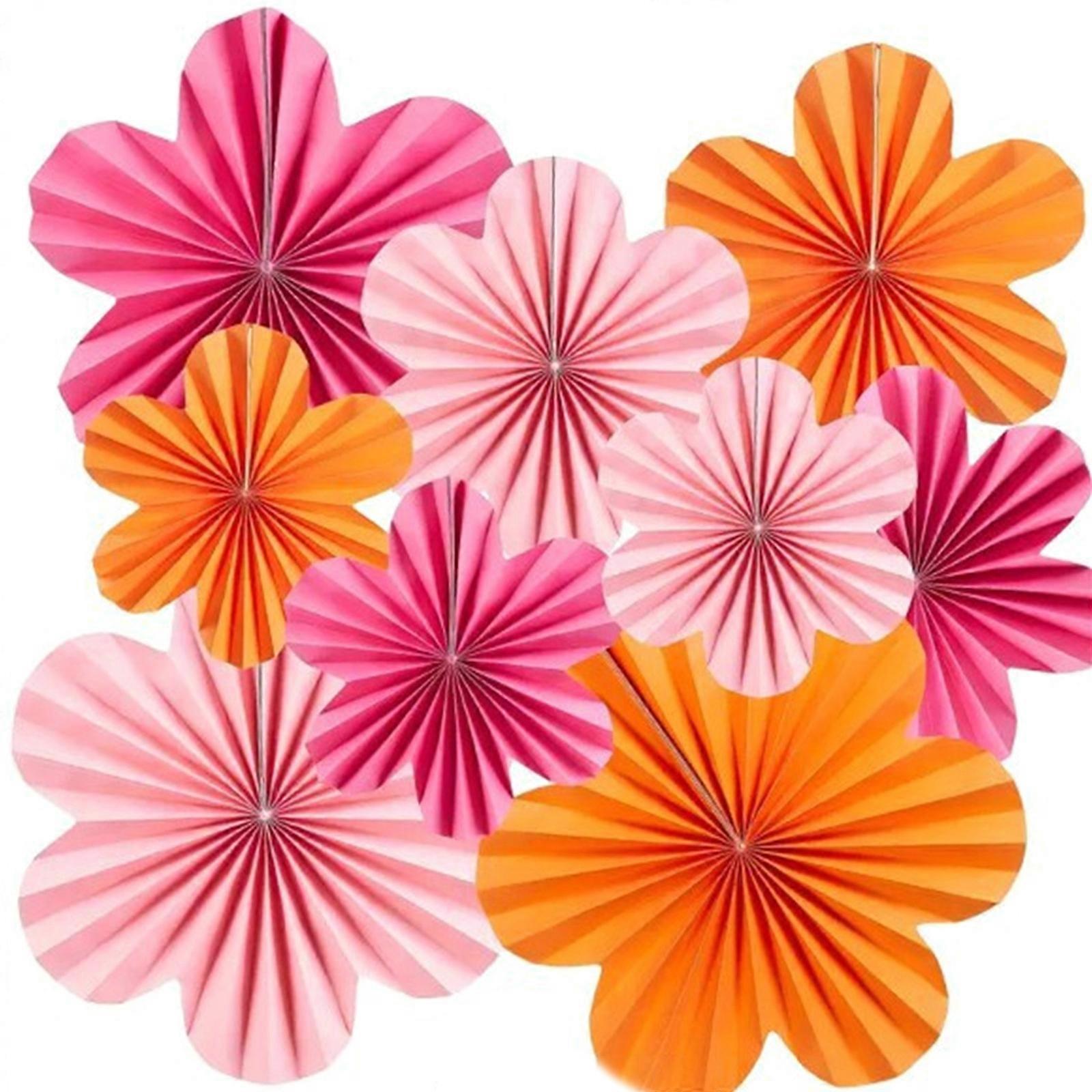 9PCS Foldable Fan Flowers Wall Decoration Set For Festival Event Home Parties Romantics Background Arrangement Pink orange red