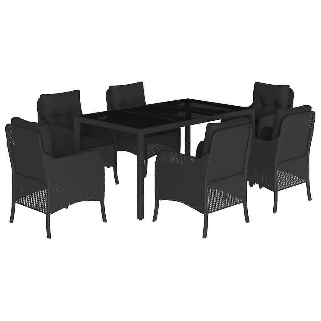 7 Piece Garden Dining Set With Cushions Black Poly Rattan Outdoor Dining Sets