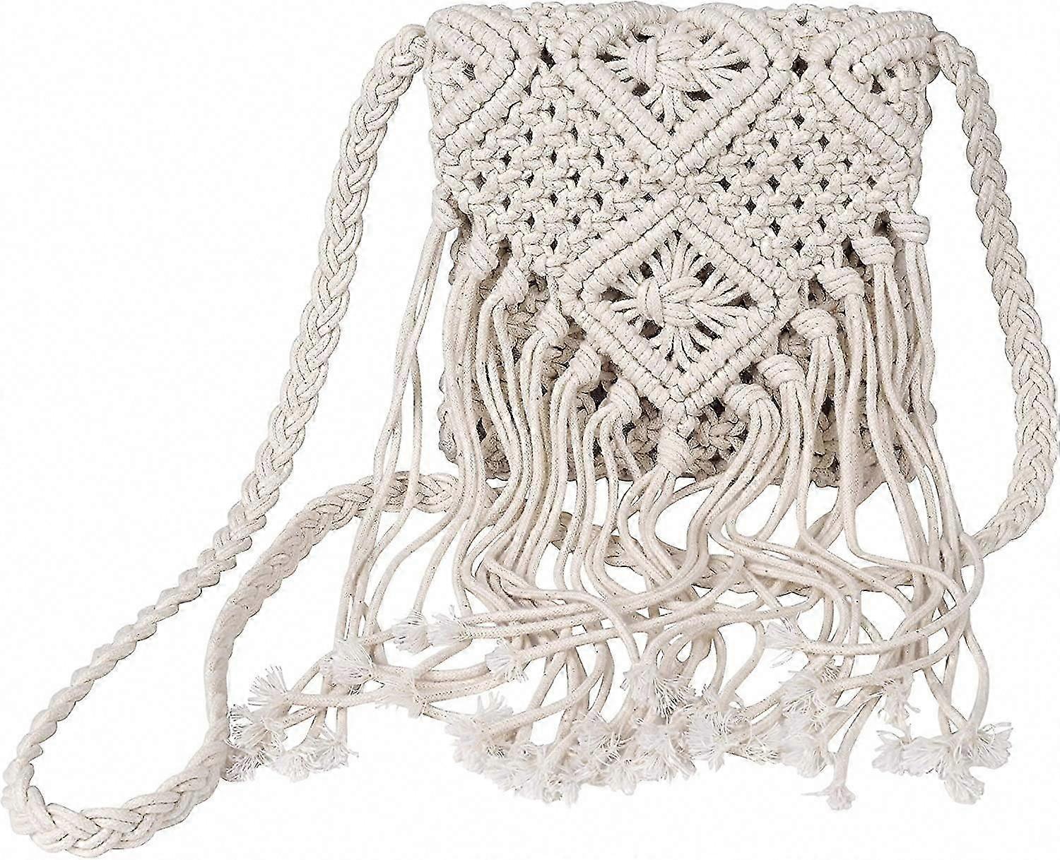Boho Women's Tassel Shoulder Bag, Vintage Crochet Crossbody Purse with Fringe, Hand Woven Boho Bag for Girls
