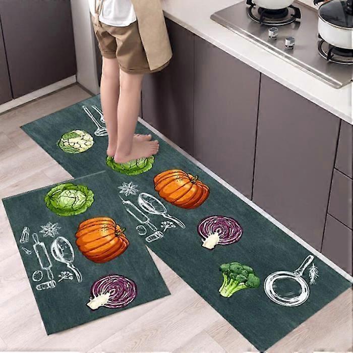2 Pieces Kitchen Mats in Front of Sink - 40 x 60cm and 40 x 120cm - Green - Non-Slip - Rectangular - Living Room Floor Mats
