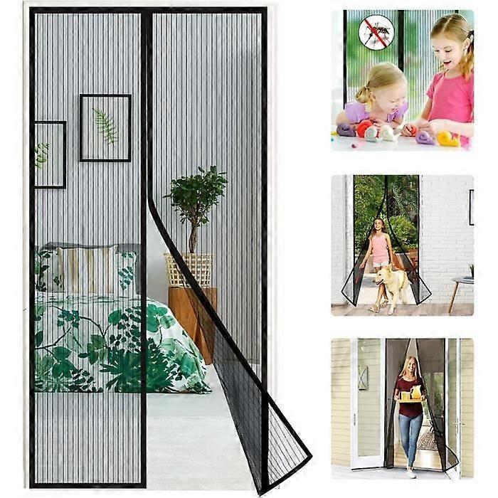 Magnetic Door Curtain/Magnetic Screen Door for Windows Anti Mosquitoes Flies Black (120x210 CM)