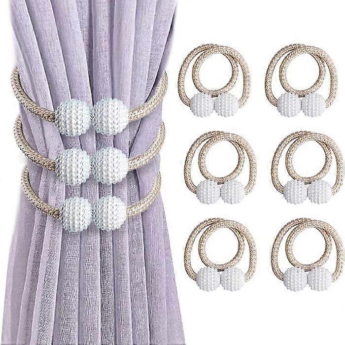 Pack of 6 (Beige) Curtain Tiebacks, Magnetic Curtain Tiebacks Window Ball Faux Pearl Curtain Buckle Clip for