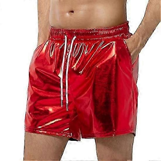Men's Glossy Surface Shorts Elastic Waist Drawstring Wide Leg Beach Casual Streetwear Pants