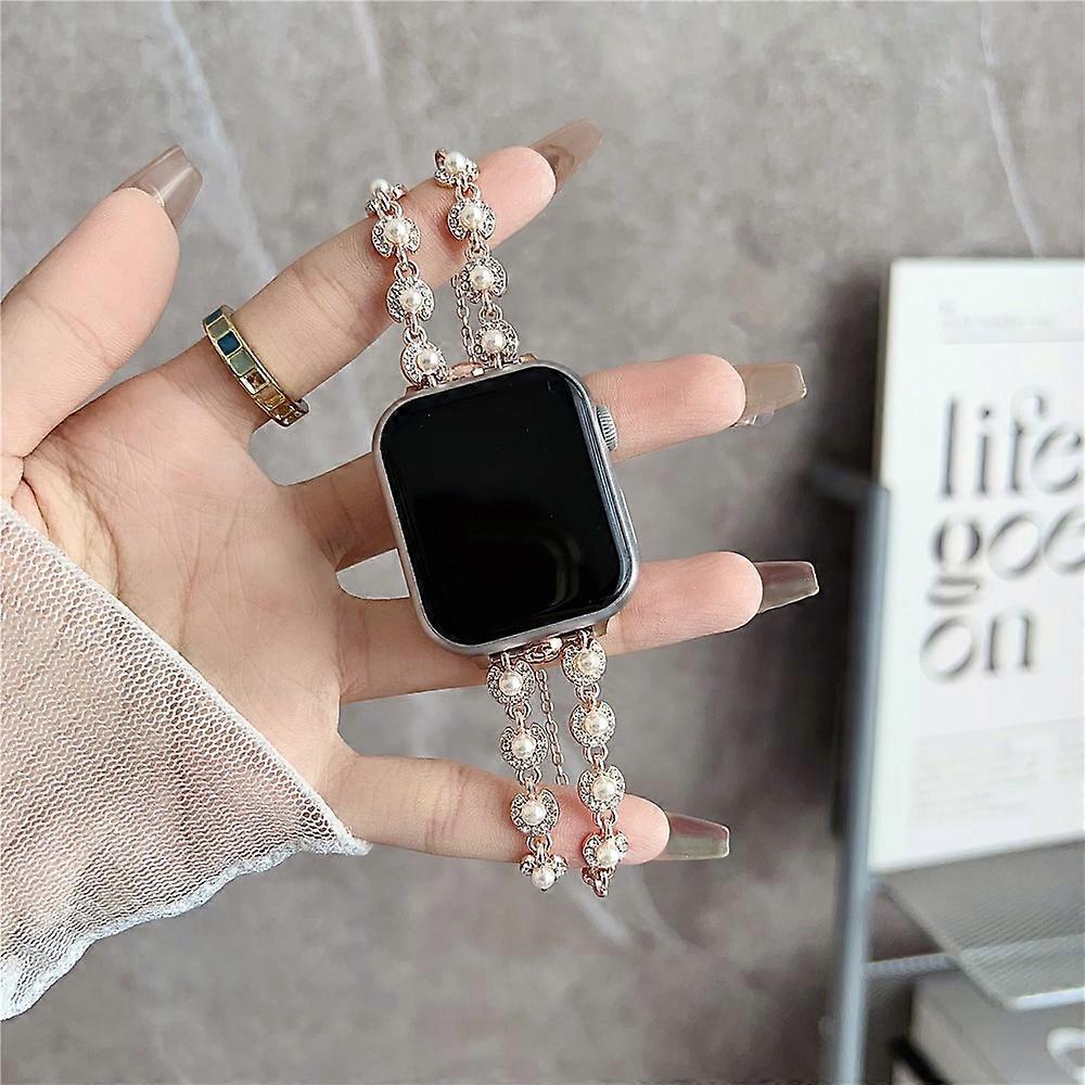 Compatible For Apple Watch Series 9 8 41mm / 6 5 4 SE (2023) SE (2022) SE 40mm / 3 2 1 38mm Watch Strap Pearl Rhinestone Bracelet