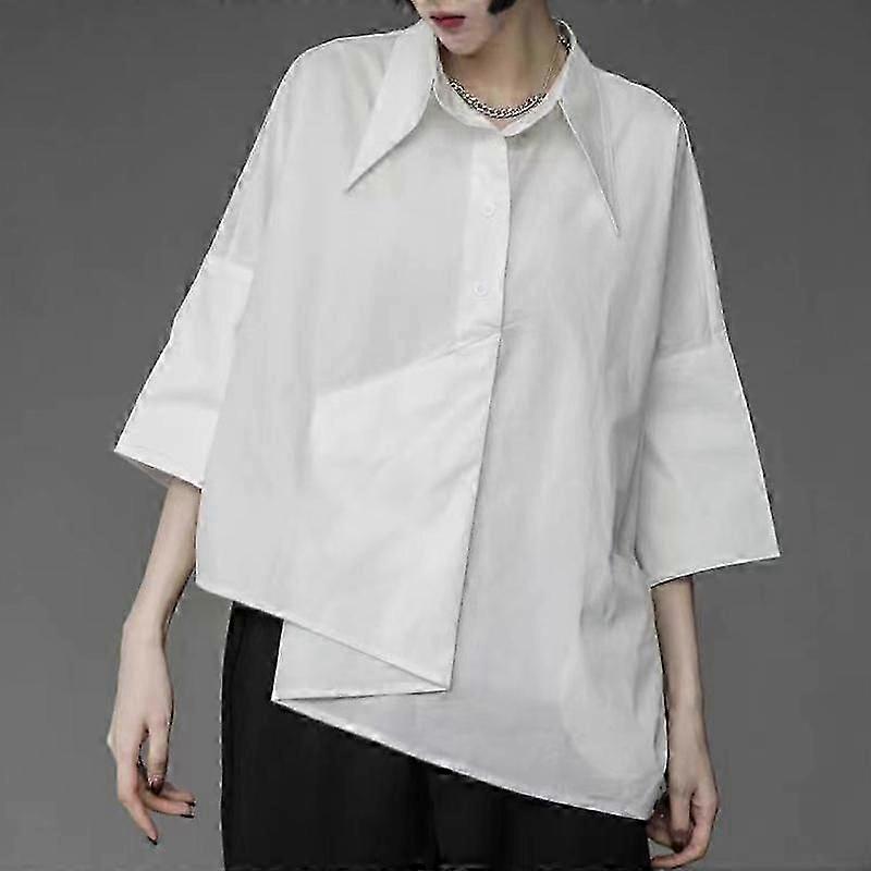 Zanzea Women's Casual Summer Blouse with 3/4 Sleeves and Turn Down Collar Asymmetrical Hem Lightweight Breathable Top