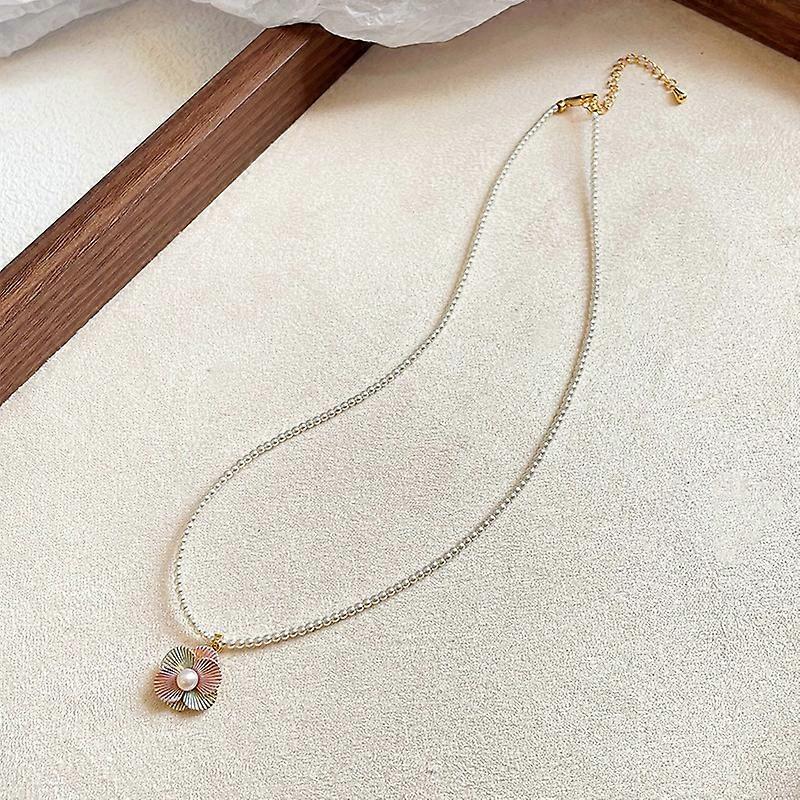 Elegant Pearl Chain Necklace, With Pastel Floral Charm, Dainty & Feminine, Perfect for Daily Wear or Office Looks