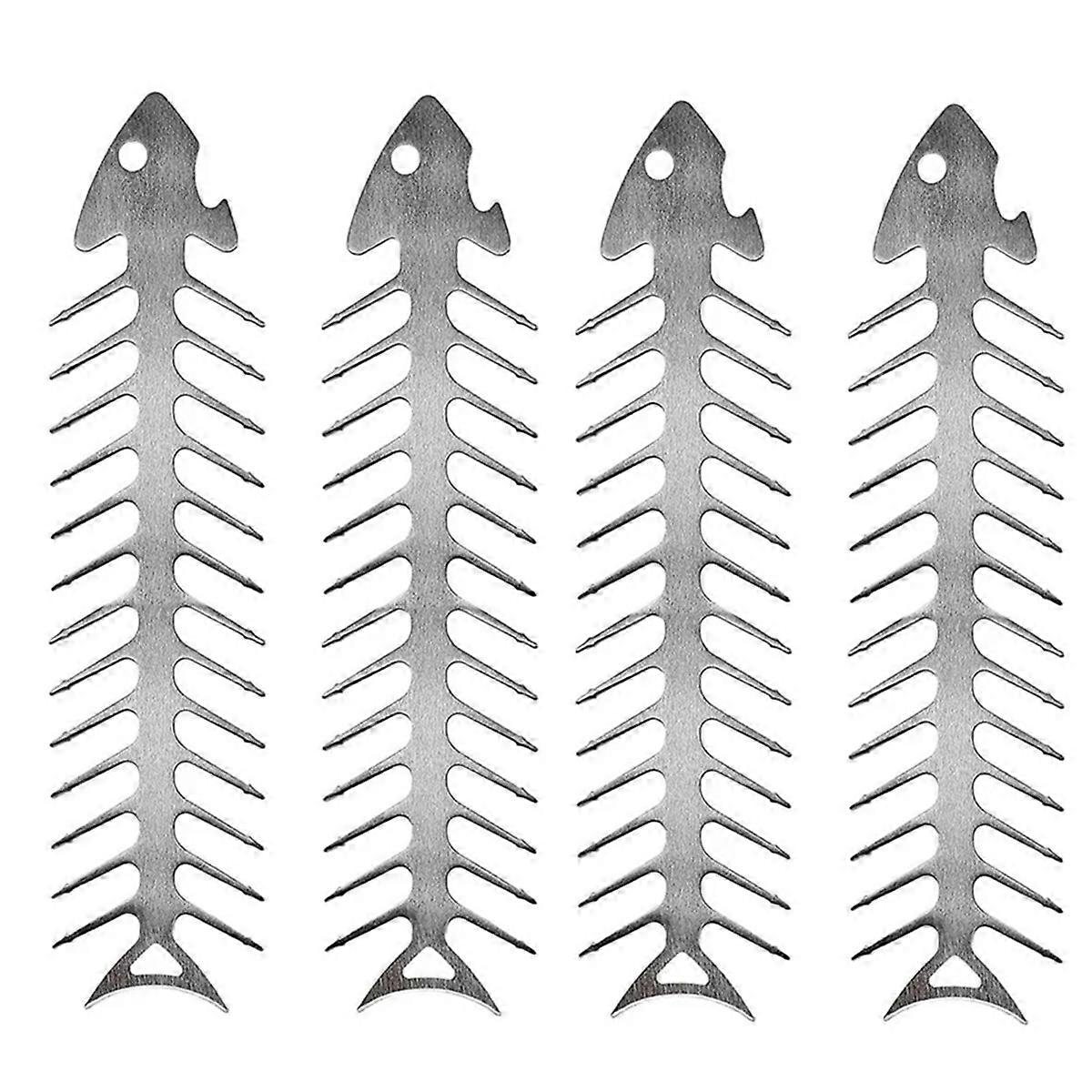 4pcs Stainless Steel Barbecue Skewers Fish Bone Skewers Meat-Piercing Tool BBQ Utensils Grill Accessories