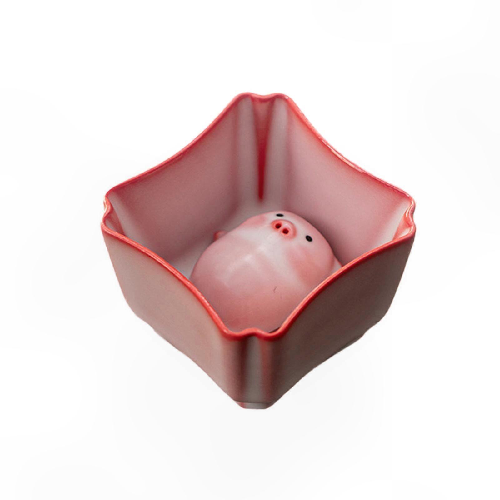 Miniature Ceramic Tea Cup Figurine with Piggy Statue for Tea Pet Collection Gift