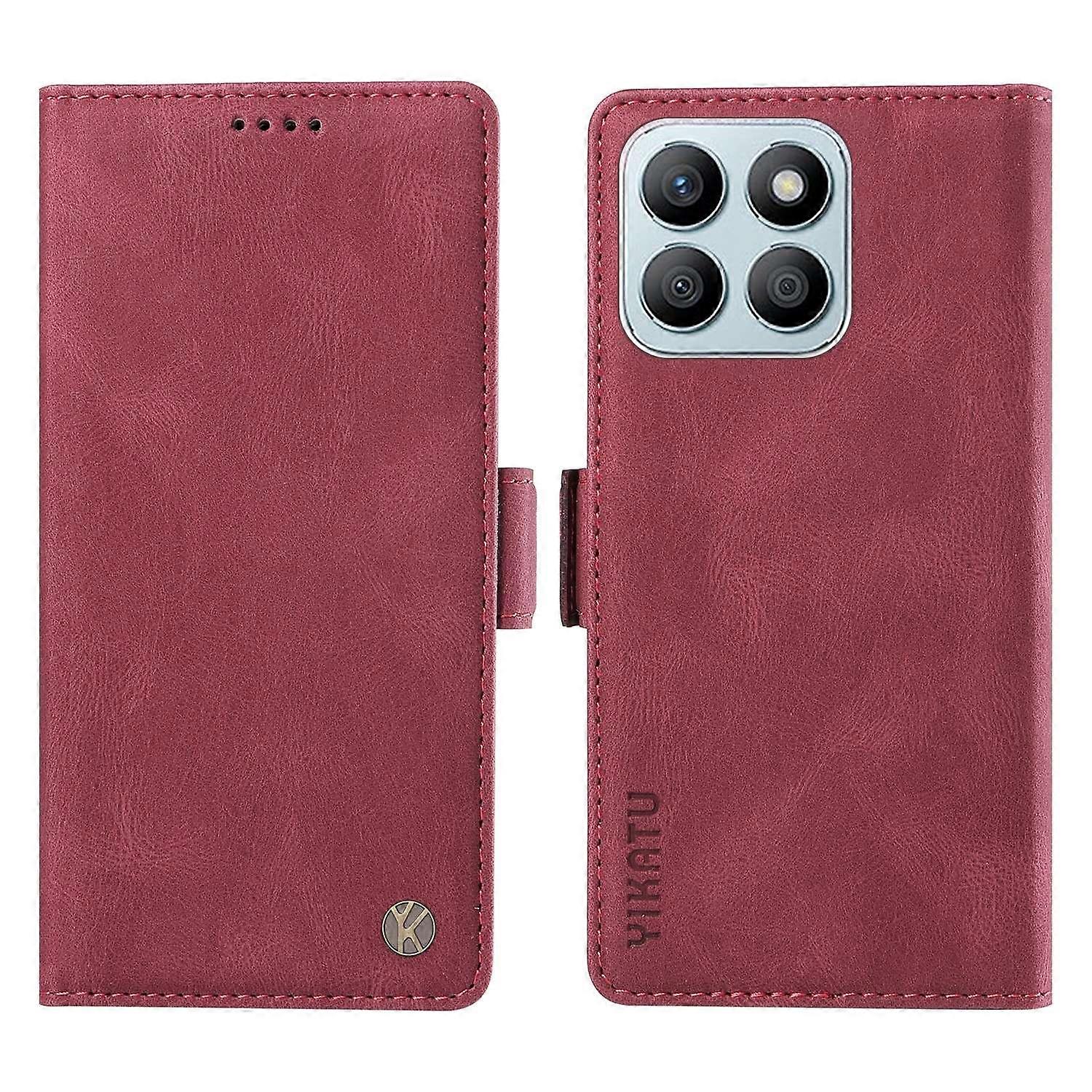 YIKATU YK-005 For Honor X8b 4G Phone Cover Skin-touch Leather Wallet Case - Wine Red