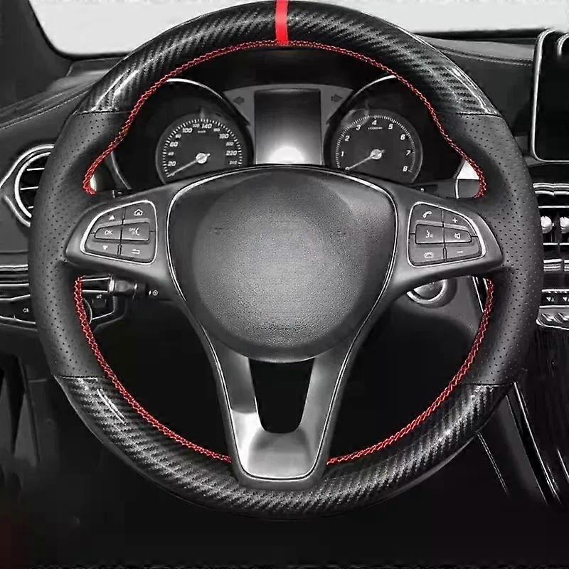 unique DIY Black Genuine Leather carbon fiber Car Steering Wheel Cover For Mercedes-Benz Vito III ( W447 ) 2015-2020 Braid