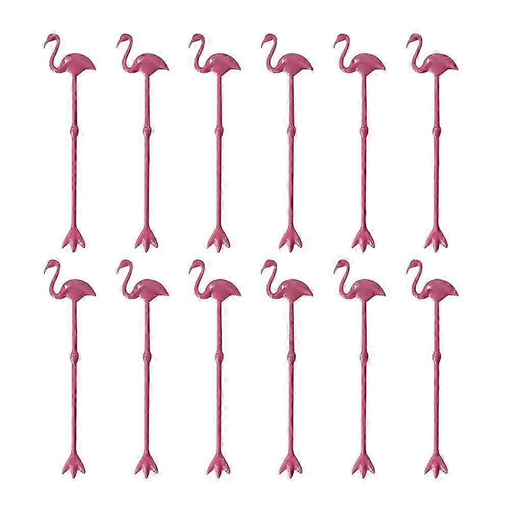 12pcs Flamingo Design Plastic Stirring Sticks for Drinks - Disposable Cocktail Muddlers (Pink)