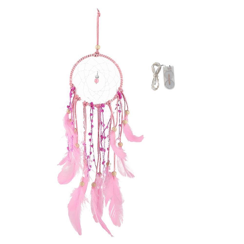 String Lights Wall Hanging Decor Handmade Feather Gift for Bedroom Living Room (Pink)