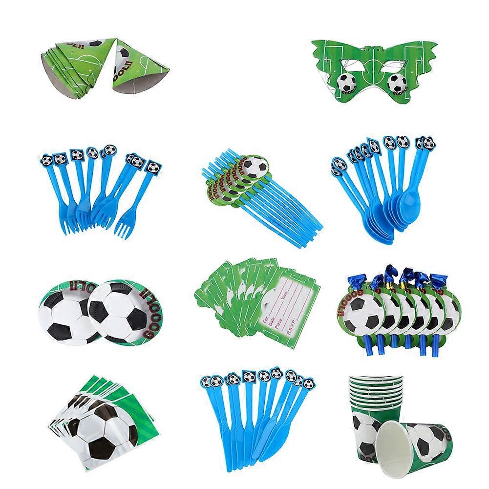 Disposable tableware set with 16 paper plates and forks for football-themed birthday cakes