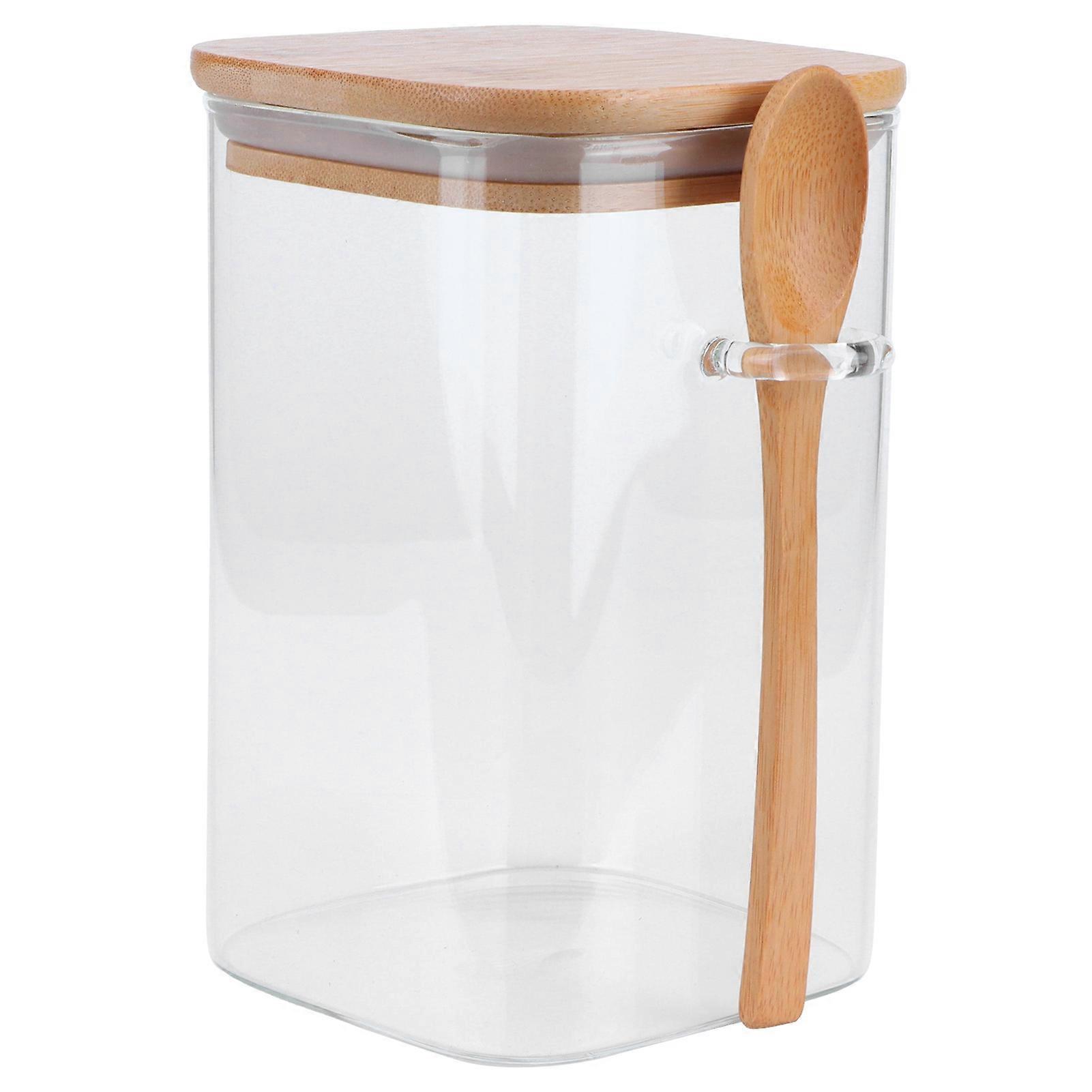 Square Storage Jar with Sealed Spoon, Seasoning Container, Coffee Bean Bottle for Kitchen, 1000ml