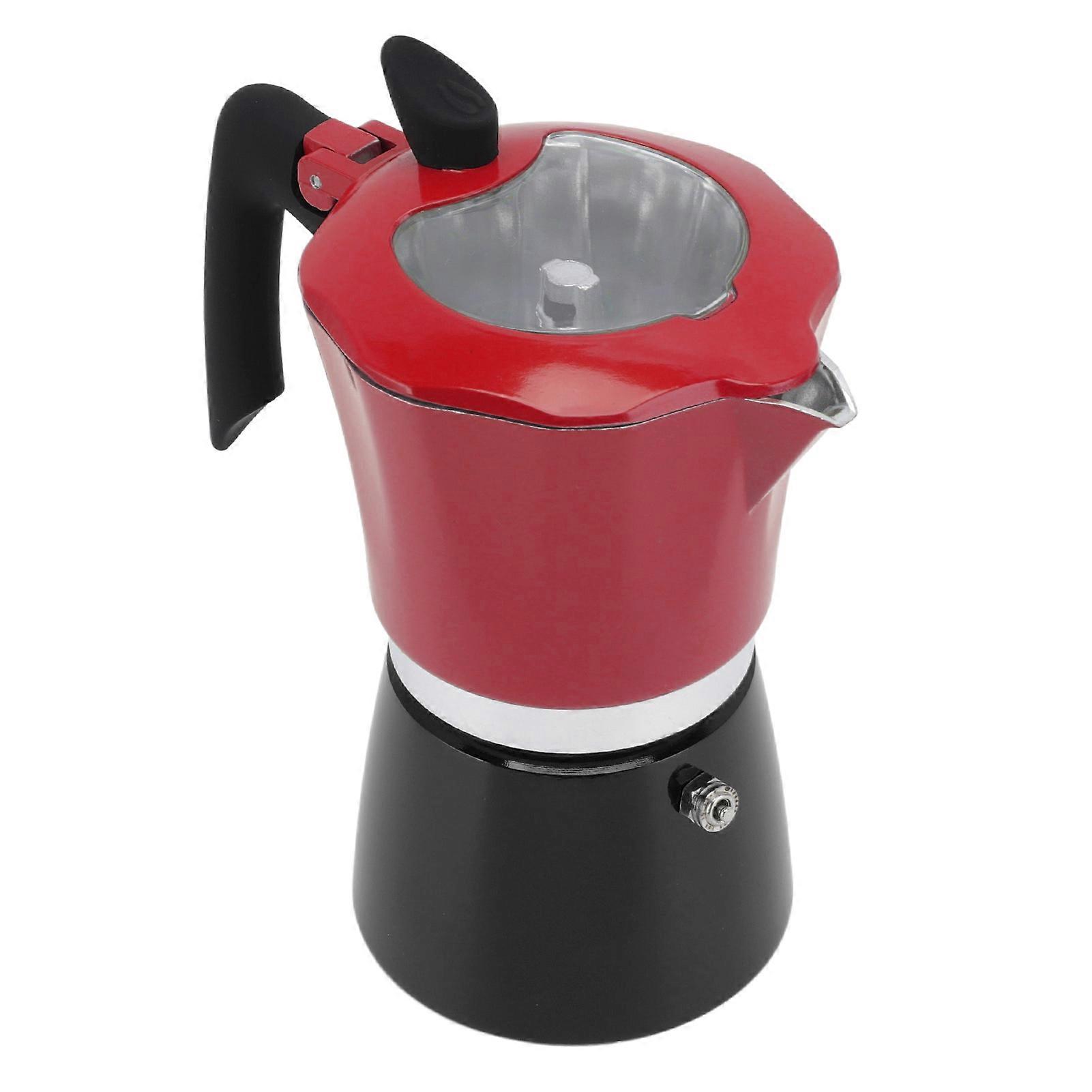 Portable Aluminum Stovetop Coffee Maker with Clear Lid for Travel, Red and Black, No. 6, 300ml