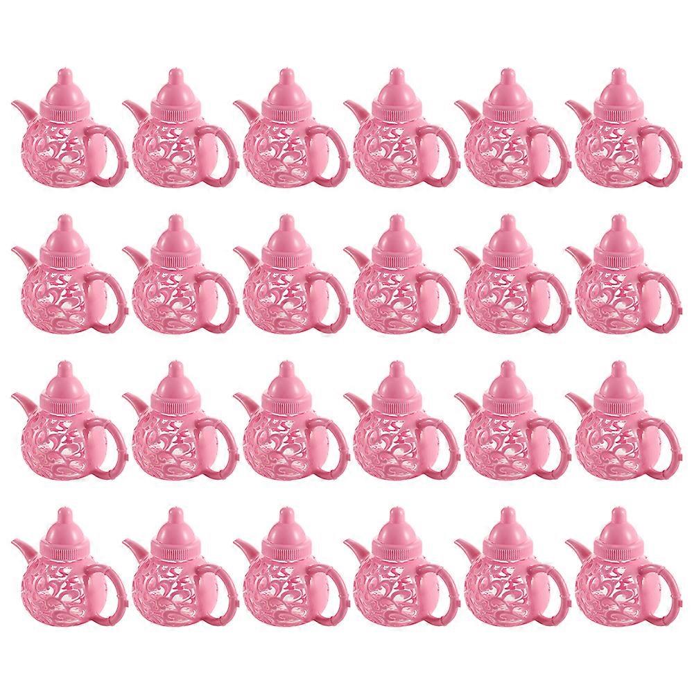24 Pieces European Style Teapot Shape Food Grade Plastic Box Cute Snack Bottle Pink
