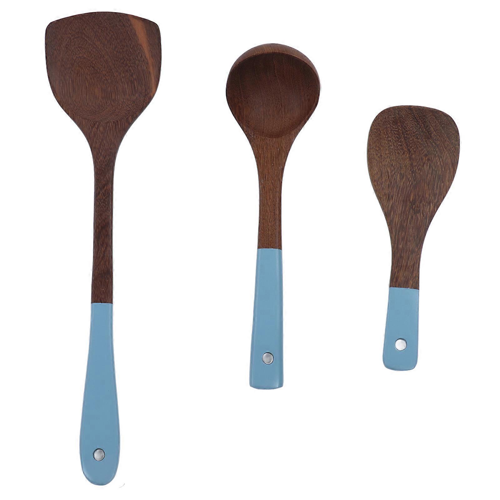 3-Piece Wenge Wood Utensil Set with Long Handle, Spatula and Spoon, Non-Stick Idyllic Style Wooden Kitchen Utensils for Cooking
