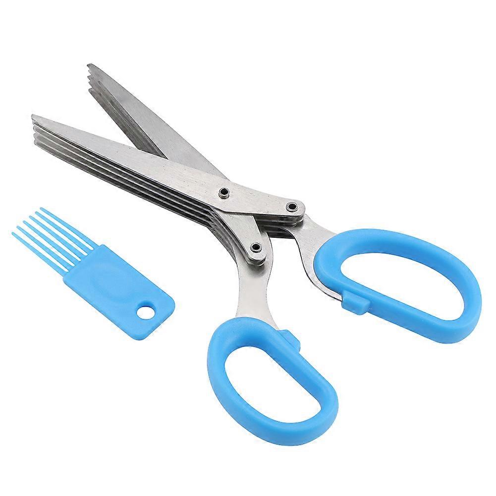 5-Layer Stainless Steel Kitchen Scissors, Scallion Grater and Sushi Tool (Blue)
