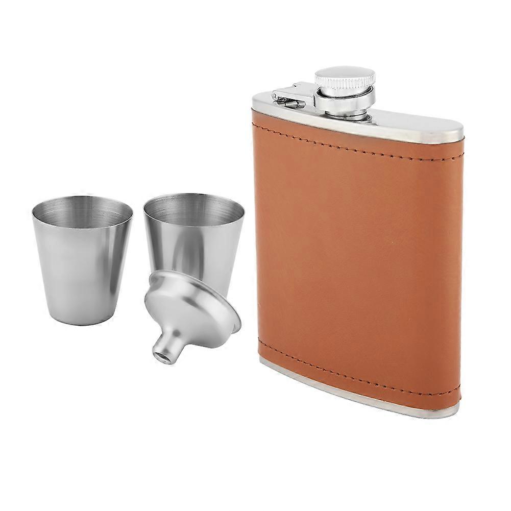 Portable Wine Bottle Funnel Set with Leatherette Wrapped Stainless Steel Hip Flask